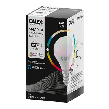 Calex Smart Kogelvormig LED Lamp E14 5W 470lm 2200-4000K | Tuya Wifi - Color Ambiance + Afstembaar Wit