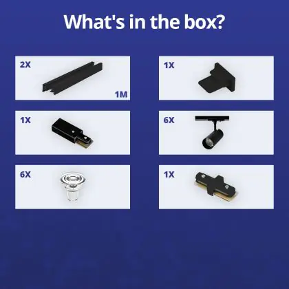 Complete Set 1-Fase Rail 2 Meter Zwart | incl. 6x Spot + GU10 2700K 3W Dimbaar + Eindkap, Voedingsconnector en I-Verbindingsstuk