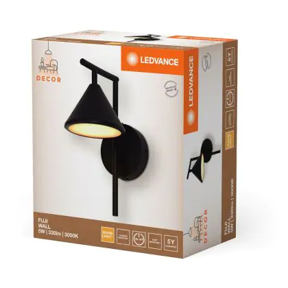 Ledvance LED Decor Wandlamp Fuji Zwart 5W 180lm - 930 Warm Wit| Beste Kleurweergave