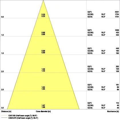 De gradenbundel geeft informatie over hoe breed het licht wordt uitgestraald. Dit zit tussen de 0 en 360 graden (D). Hoe kleiner de hoek, hoe specifieker de lichtbundel is. Over het algemeen is een smalle gradenbundel perfect voor sfeer- of accentverlichting, terwijl een brede gradenbundel ideaal is om grote oppervlaktes te verlichten.