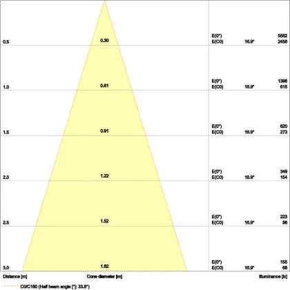 De gradenbundel geeft informatie over hoe breed het licht wordt uitgestraald. Dit zit tussen de 0 en 360 graden (D). Hoe kleiner de hoek, hoe specifieker de lichtbundel is. Over het algemeen is een smalle gradenbundel perfect voor sfeer- of accentverlichting, terwijl een brede gradenbundel ideaal is om grote oppervlaktes te verlichten.