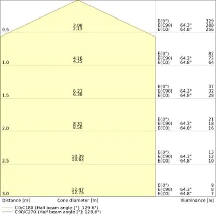 | Lichtdistributie | Symmetrisch | |